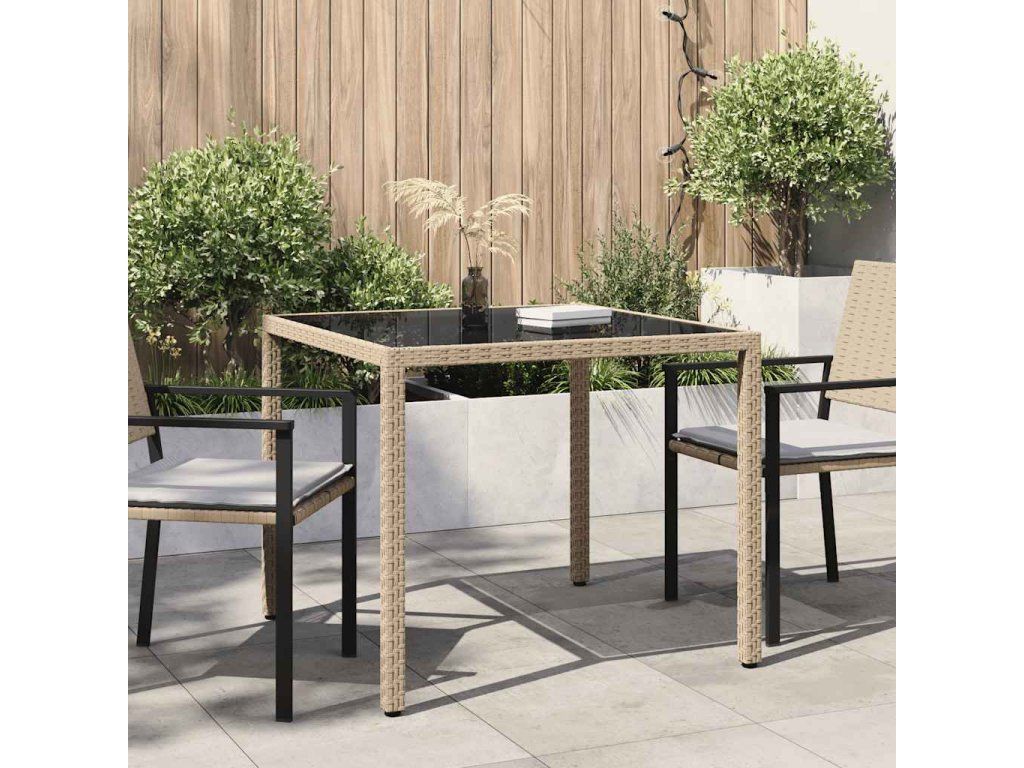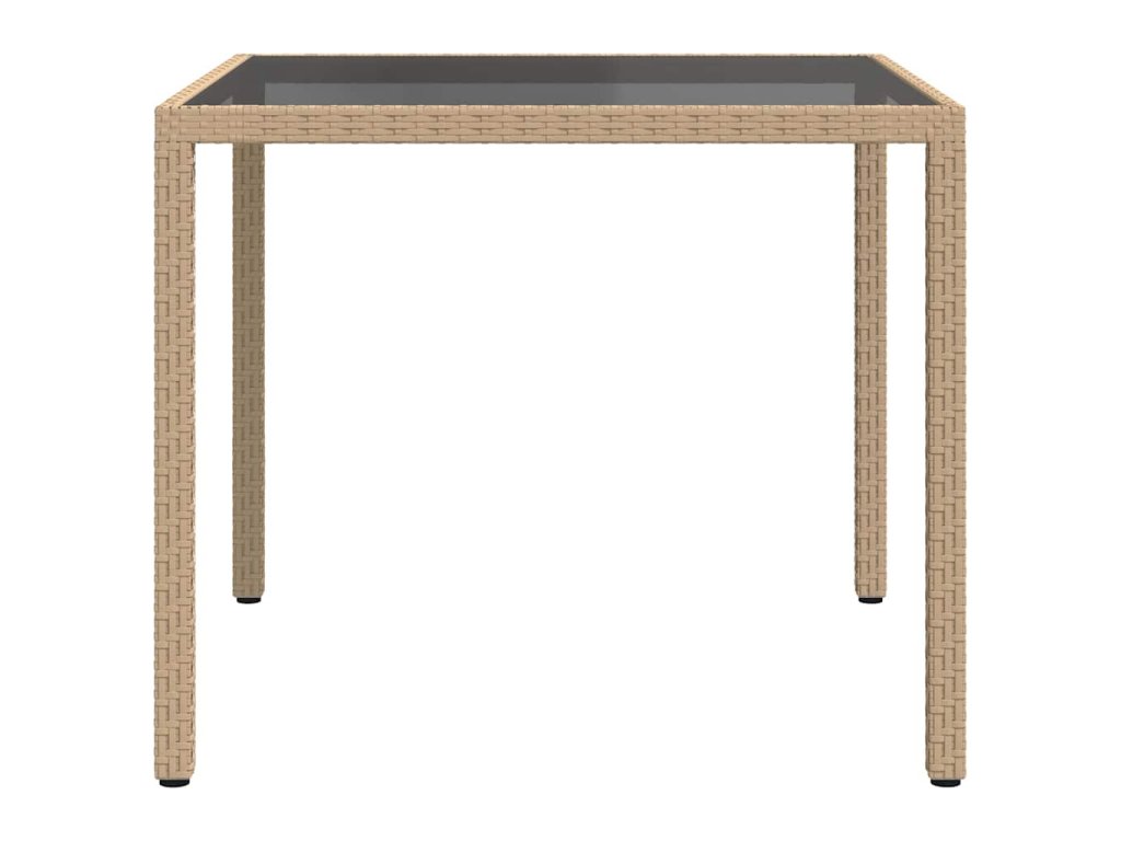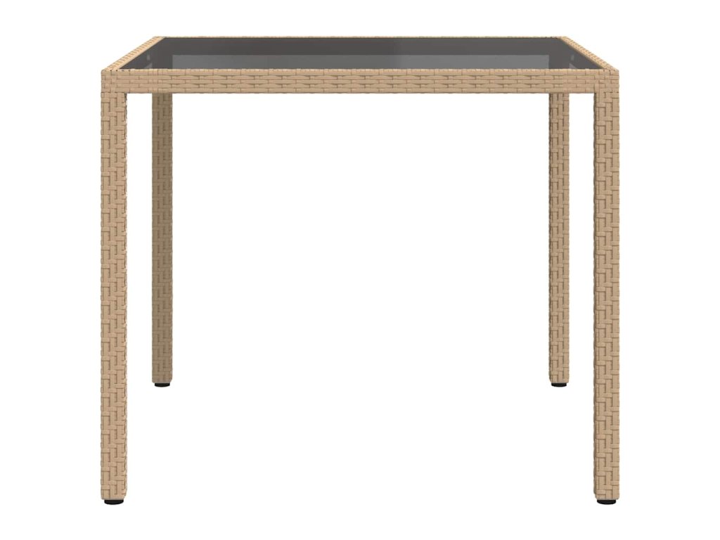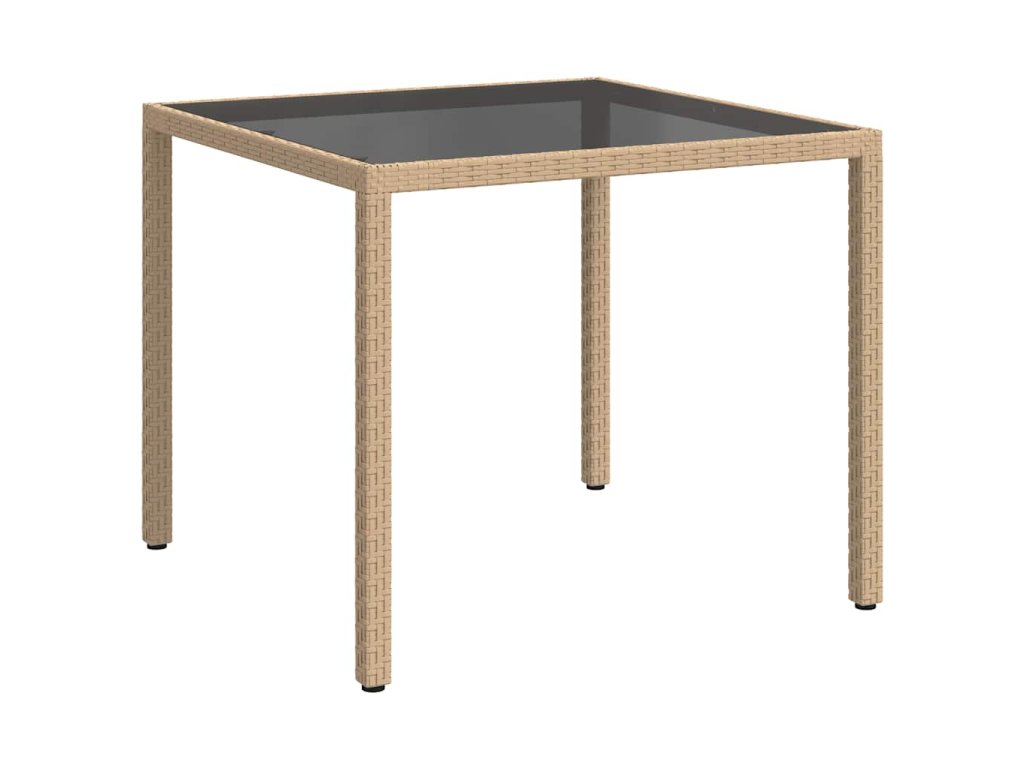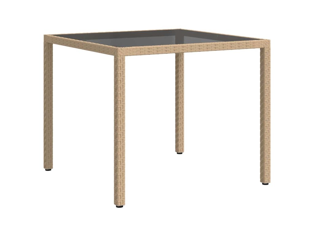 Multidom Záhradný stôl 90x90x75 cm tvrdené sklo a polyratan béžový