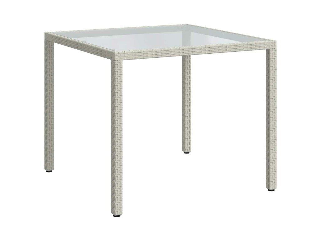 Multidom Záhradný stôl 90x90x75 cm tvrdené sklo a polyratan biely