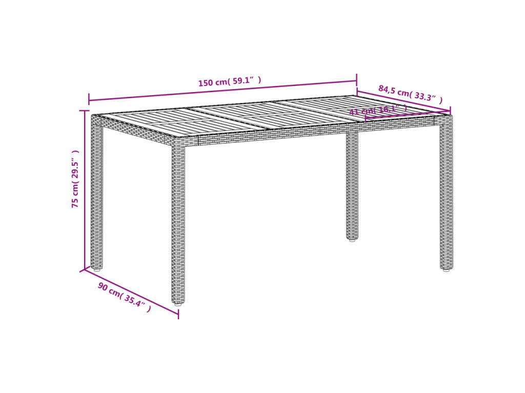 Multidom Záhradný stôl béžový 150x90x75 cm polyratan akáciové drevo