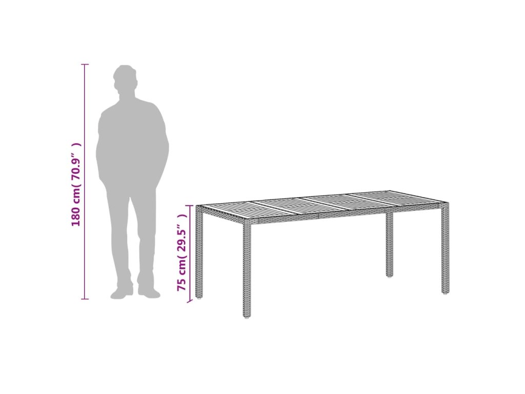 Multidom Záhradný stôl béžový 190x90x75 cm polyratan akáciové drevo