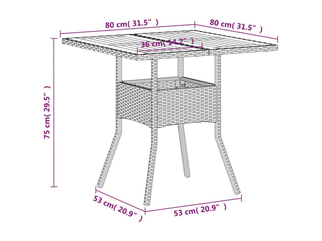 - Rozmery: 80 x 80 x 75 cm (D x Š x V)