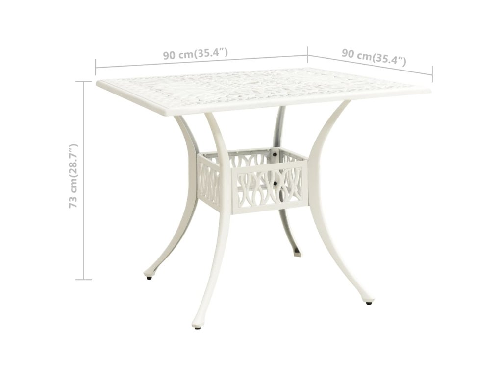 Multidom Záhradný stôl biely 90x90x73 cm liaty hliník