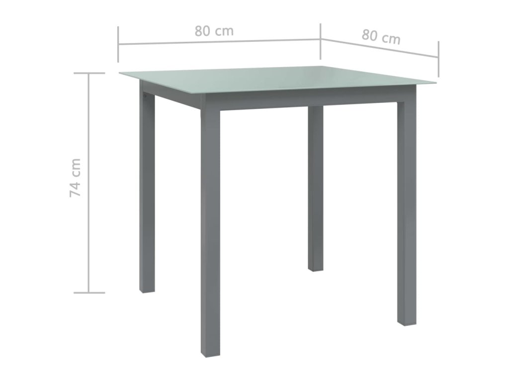 Multidom Záhradný stôl bledosivý 80x80x74 cm hliník a sklo