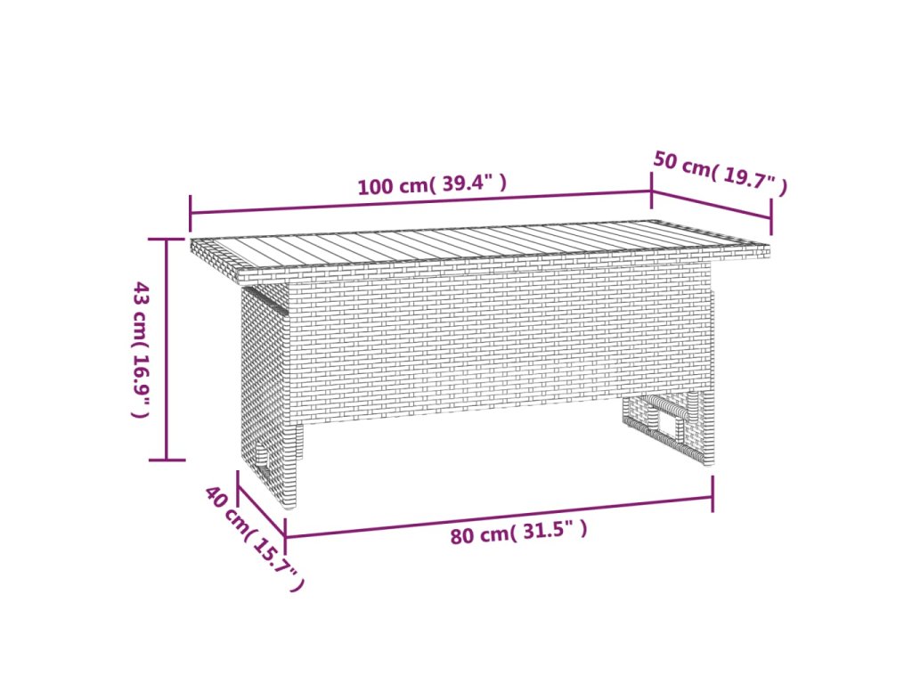 Multidom Záhradný stôl čierny 100x50x43/63 cm masívna akácia a polyratan