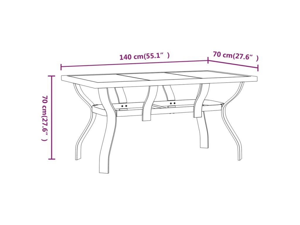 Multidom Záhradný stôl čierny 140x70x70 cm oceľ a sklo