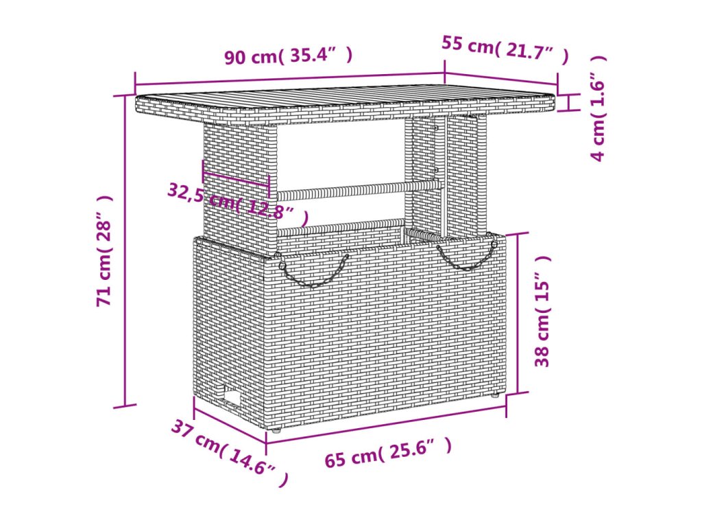 - Materiál: PE ratan, práškovaná oceľ, masívne akáciové drevo s olejovým náterom