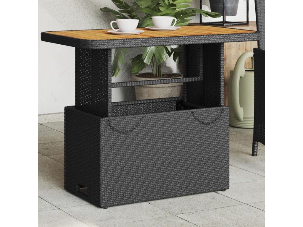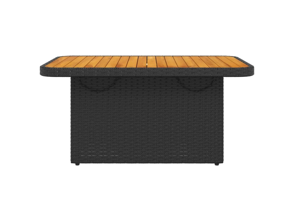 Multidom Záhradný stôl čierny 90x55x71 cm polyratan a akáciové drevo