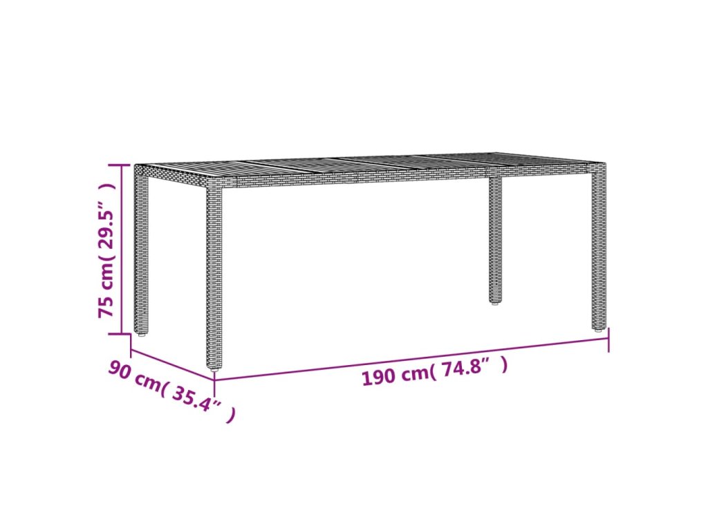 Multidom Záhradný stôl s akáciovou doskou sivý 190x90x75 cm polyratan