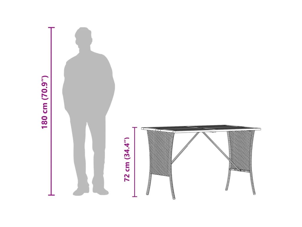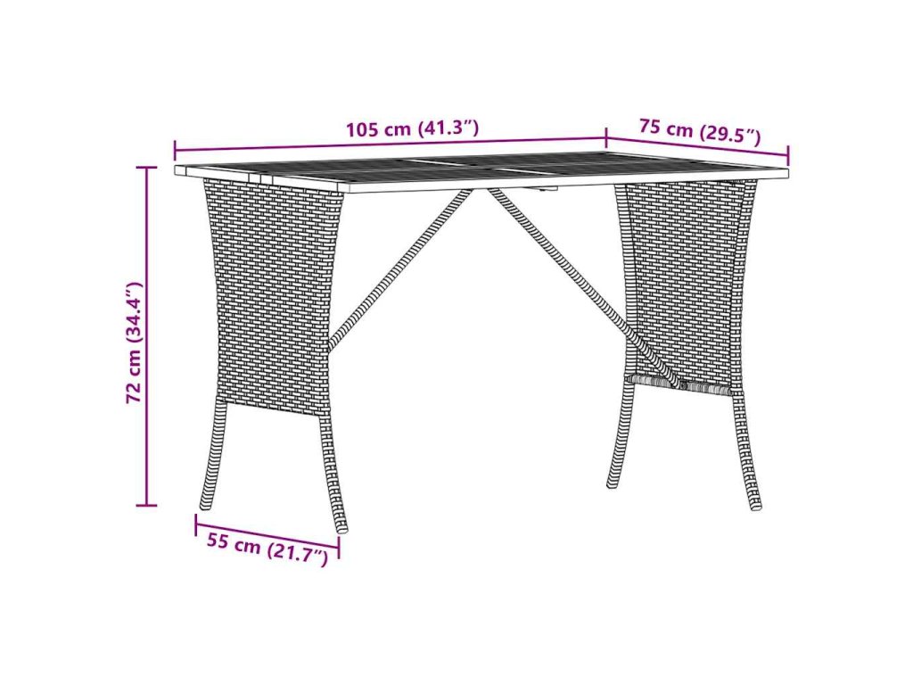 - Materiál: PE ratan, práškovaná oceľ, masívne akáciové drevo s olejovým náterom