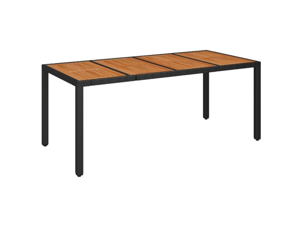 Multidom záhradný stôl s drevenou doskou čierny 190x90x75 cm polyratan