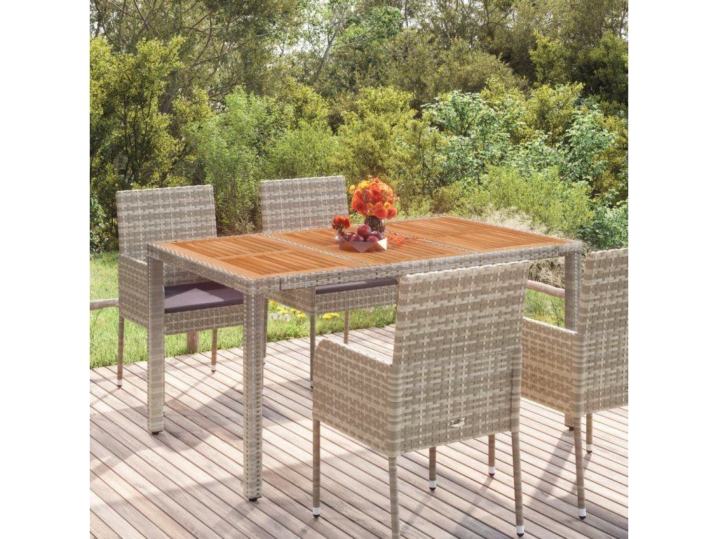 Multidom Záhradný stôl s drevenou doskou sivý 150x90x75 cm polyratan
