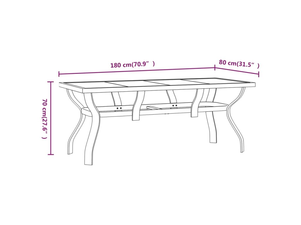 Multidom Záhradný stôl sivo-čierny 180x80x70 cm oceľ a sklo