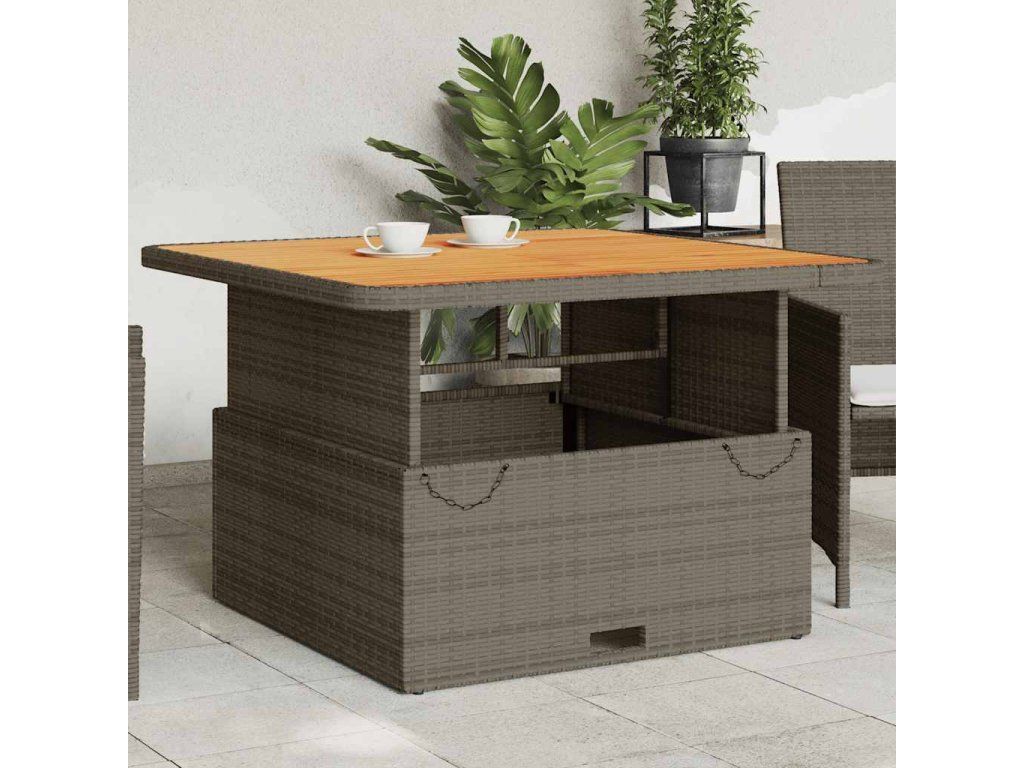 Multidom Záhradný stôl sivý 110x110x71 cm polyratan a akáciový masív