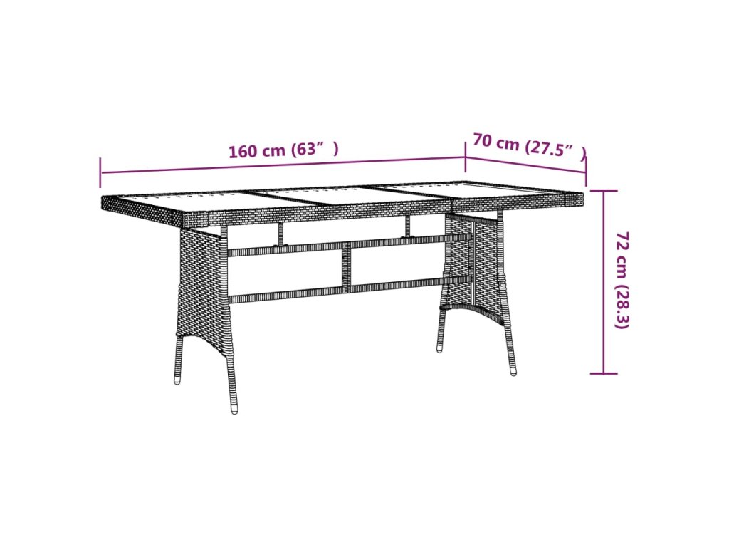 Multidom Záhradný stôl sivý 160x70x72 cm polyratan a akáciový masív