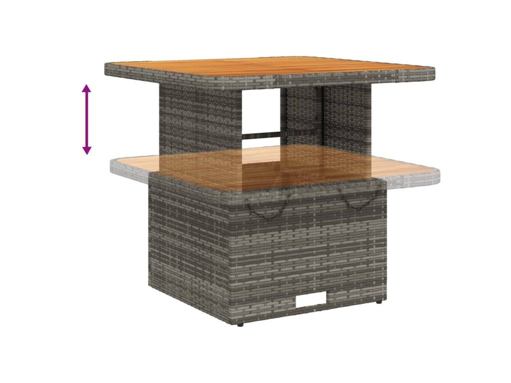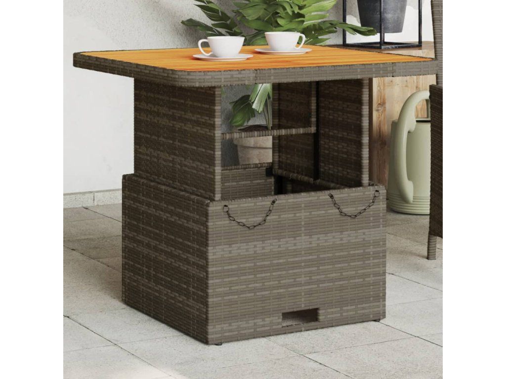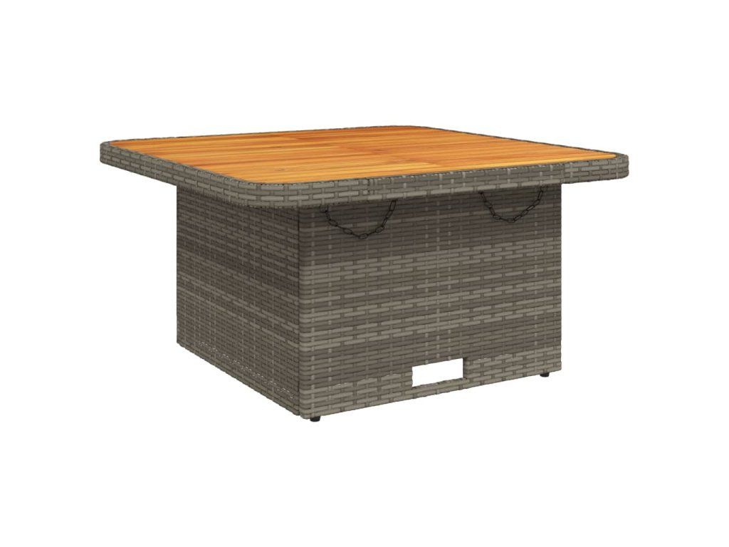 Multidom Záhradný stôl sivý 80x80x71 cm polyratan a akáciový masív
