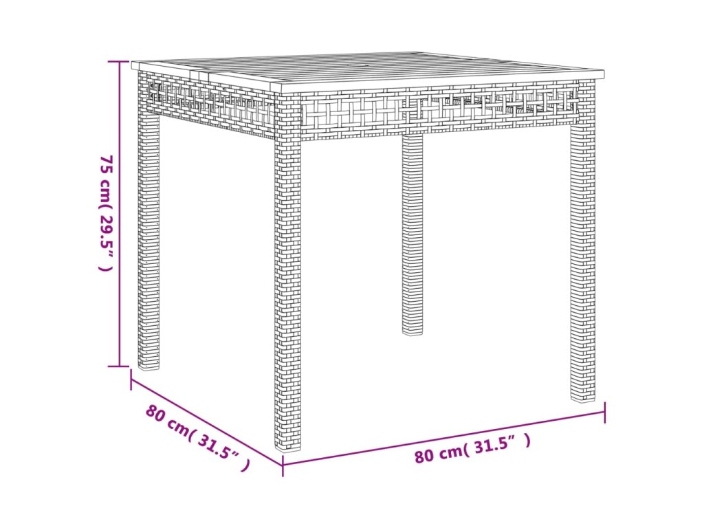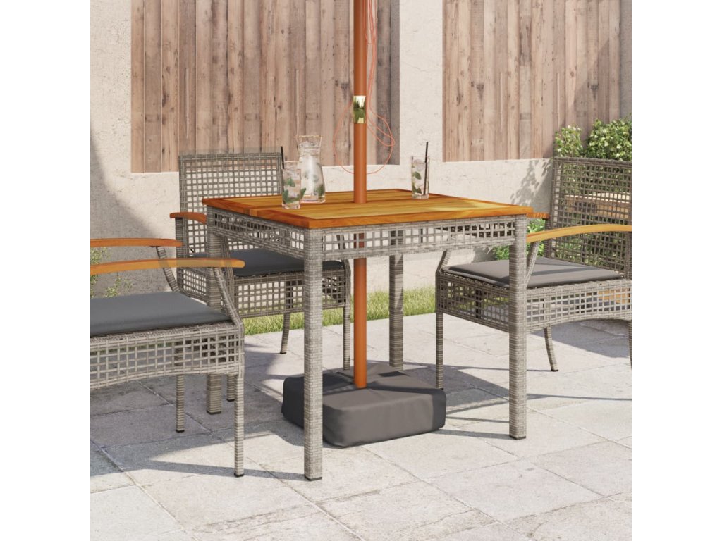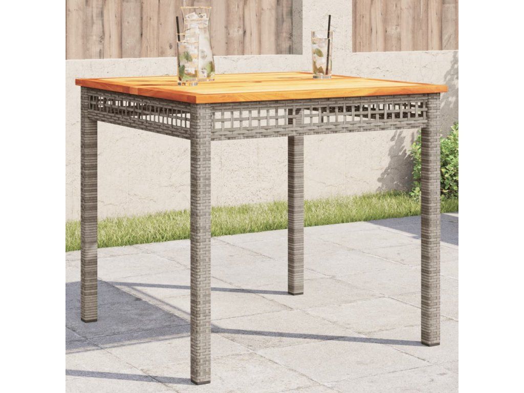 Multidom Záhradný stôl sivý 80x80x75 cm polyratan akáciové drevo