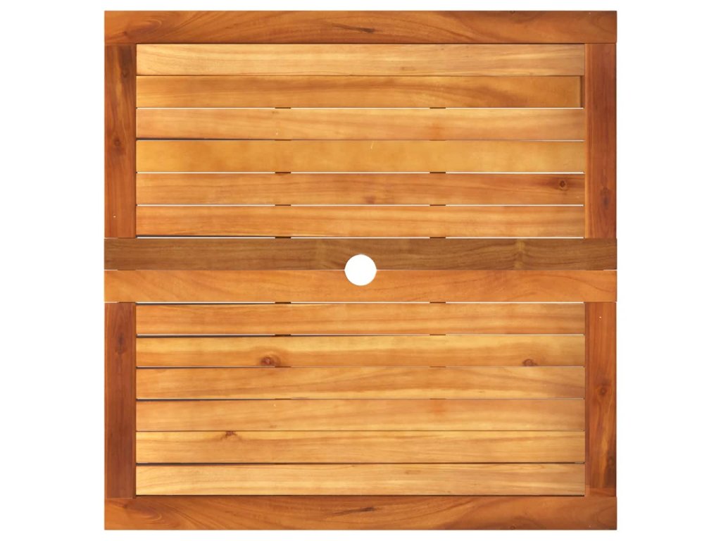 - Stabilná a ľahko čistiteľná stolová doska: Tento záhradný stôl má dosku z akáciového dreva, ktorá je stabilná, odolná a ľahko sa čistí vlhkou handričkou.