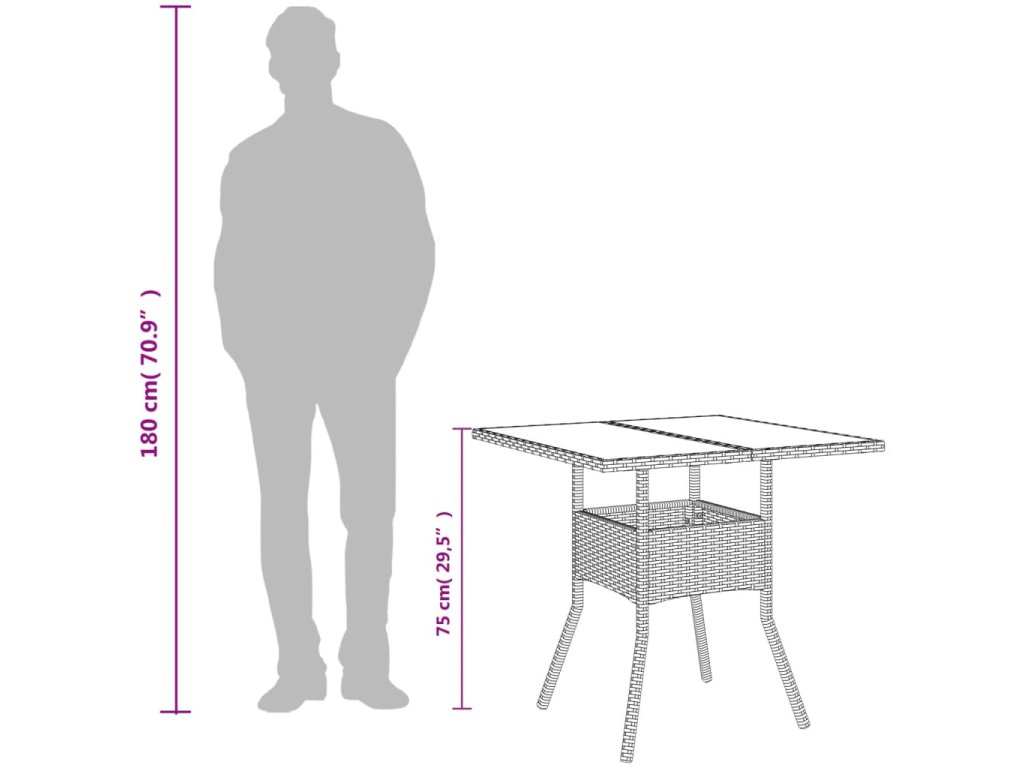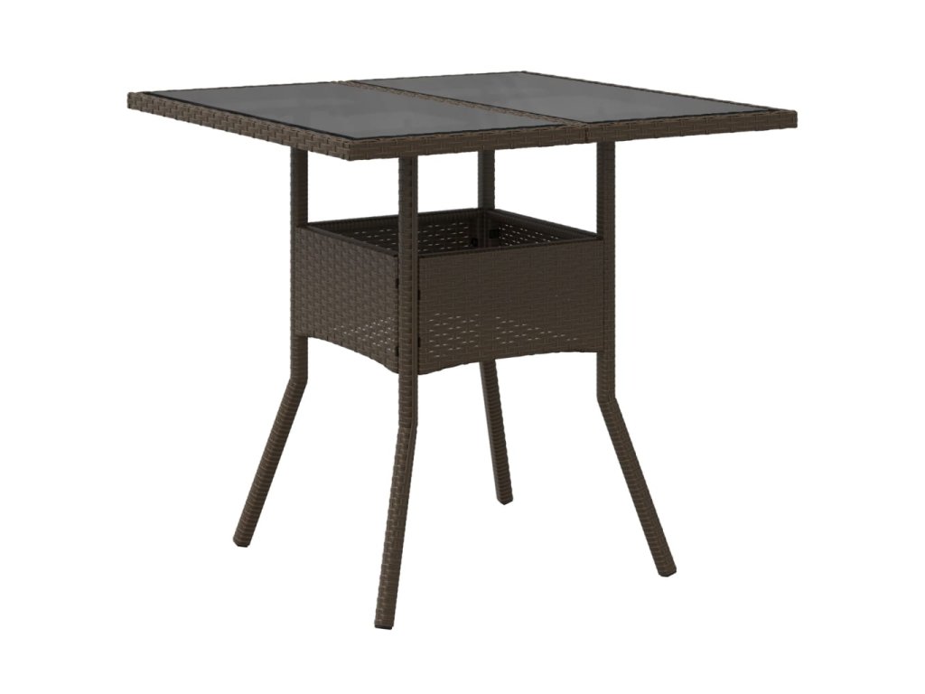 Multidom Záhradný stôl so sklenenou doskou, hnedý 80x80x75 cm, polyratan