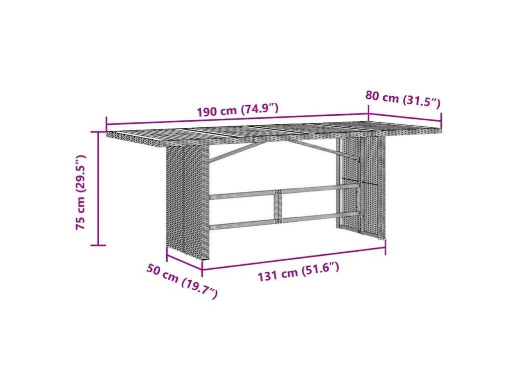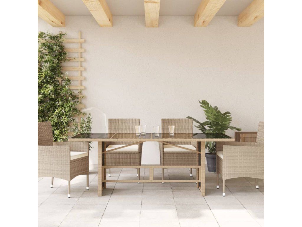 Multidom Záhradný stôl so sklenenou doskou béžový 190x80x75 cm polyratan
