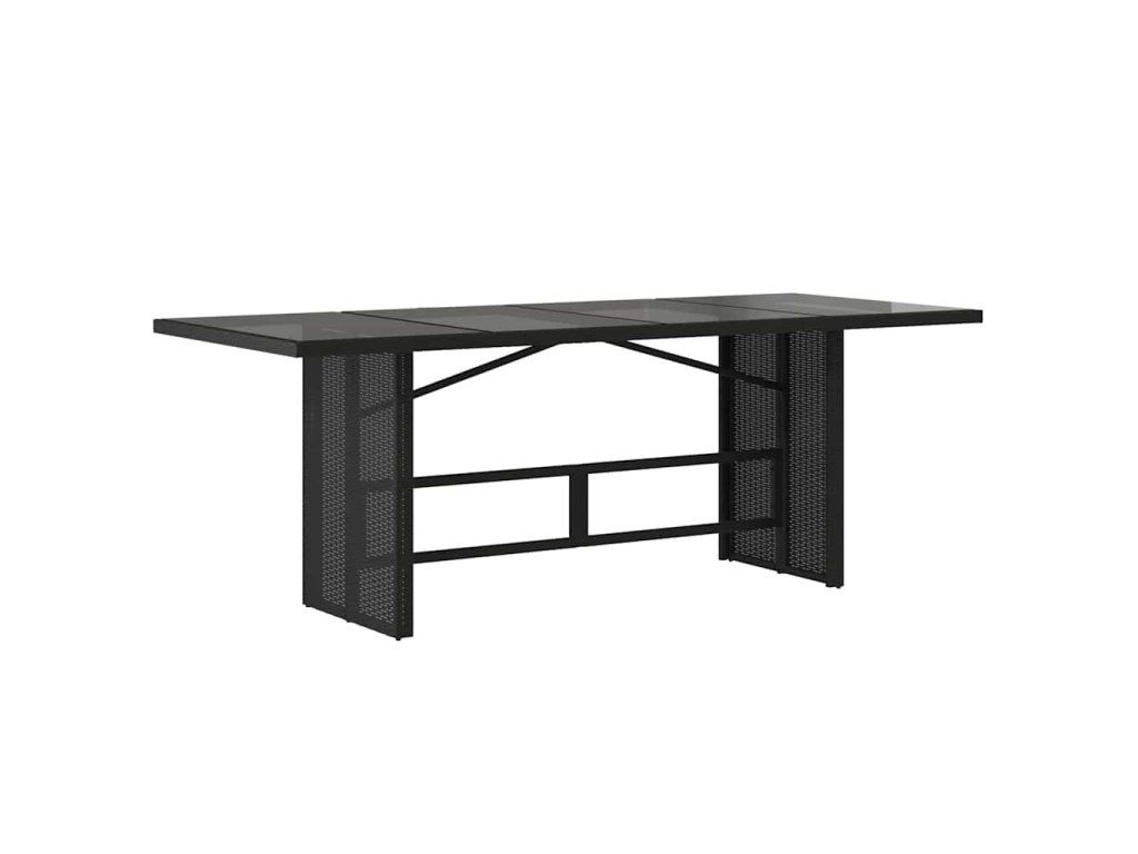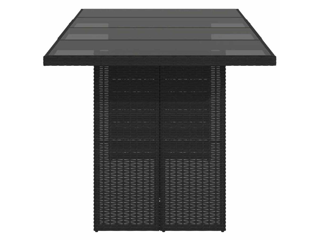 Multidom Záhradný stôl so sklenenou doskou čierny 190x80x74 cm polyratan