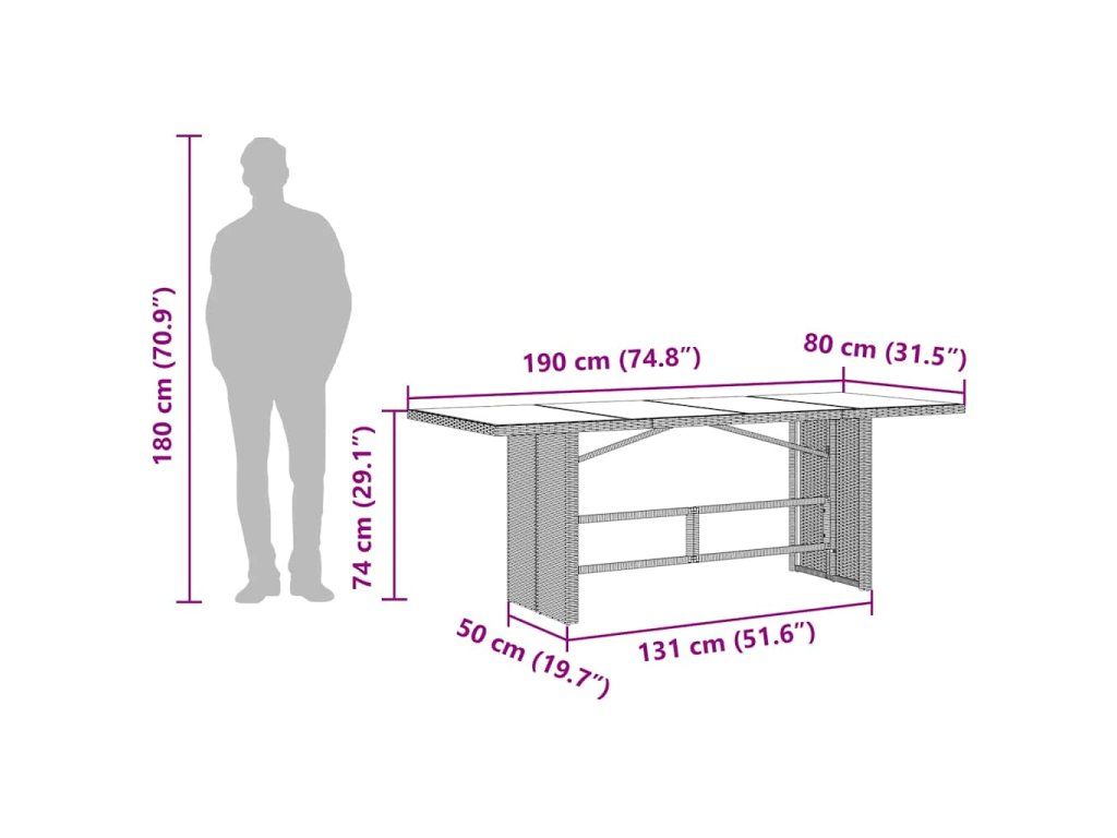 - Sklenená doska stola: Doska vonkajšieho stola je vyrobená z pevného a odolného tvrdeného skla, čo uľahčuje čistenie vlhkou handričkou a dodáva vášmu vonkajšiemu priestoru nádych elegancie.