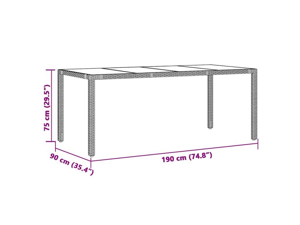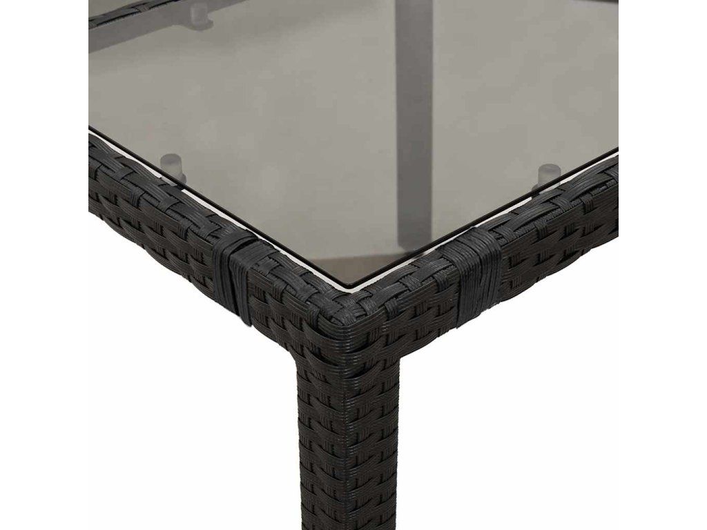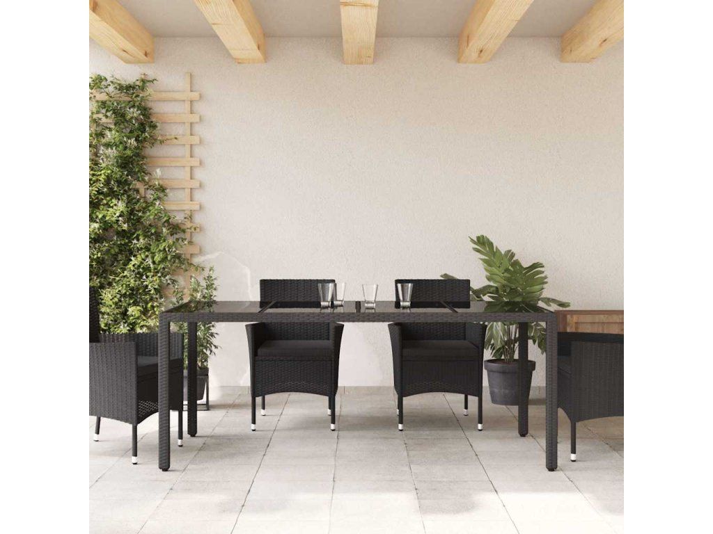 Multidom Záhradný stôl so sklenenou doskou čierny 190x90x75 cm polyratan