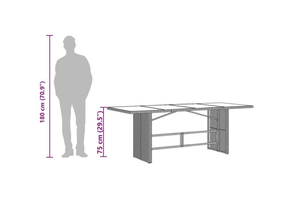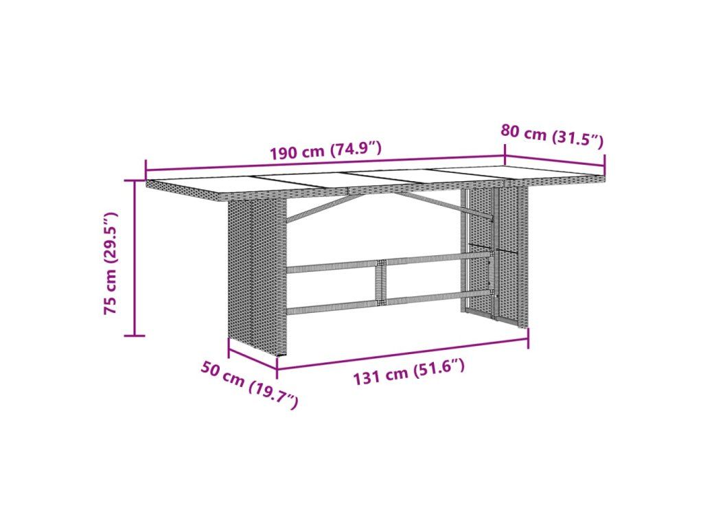 Multidom Záhradný stôl so sklenenou doskou hnedý 190x80x75 cm polyratan