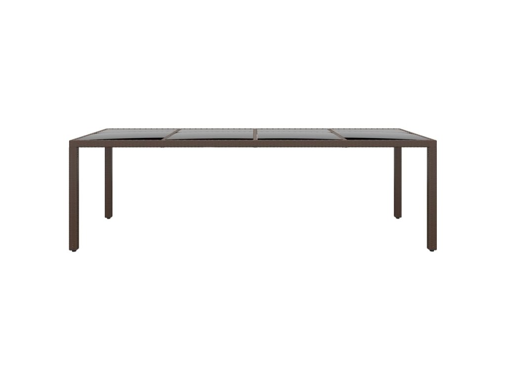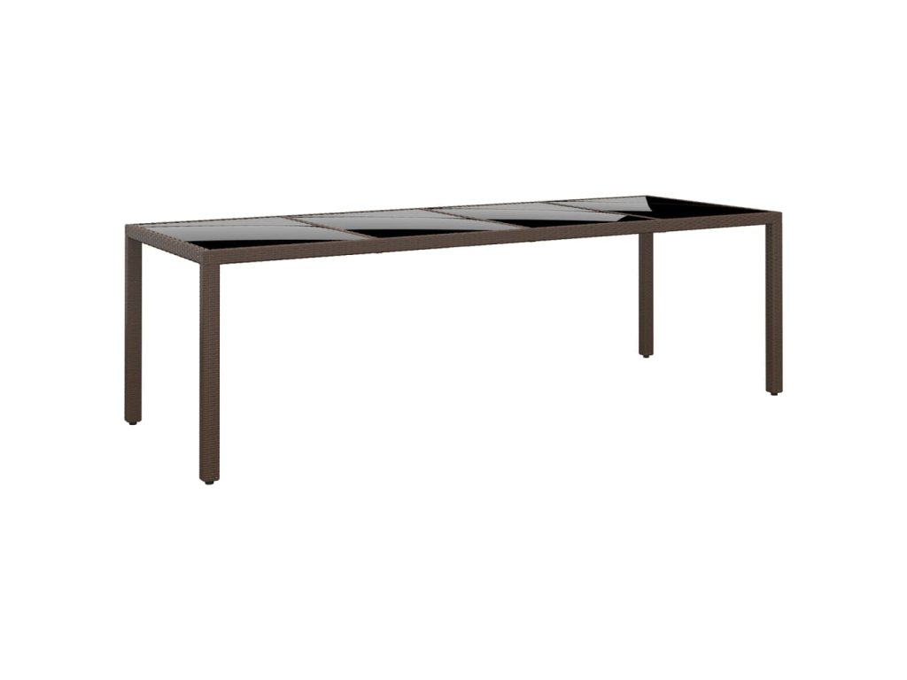 Multidom Záhradný stôl so sklenenou doskou hnedý polyratan