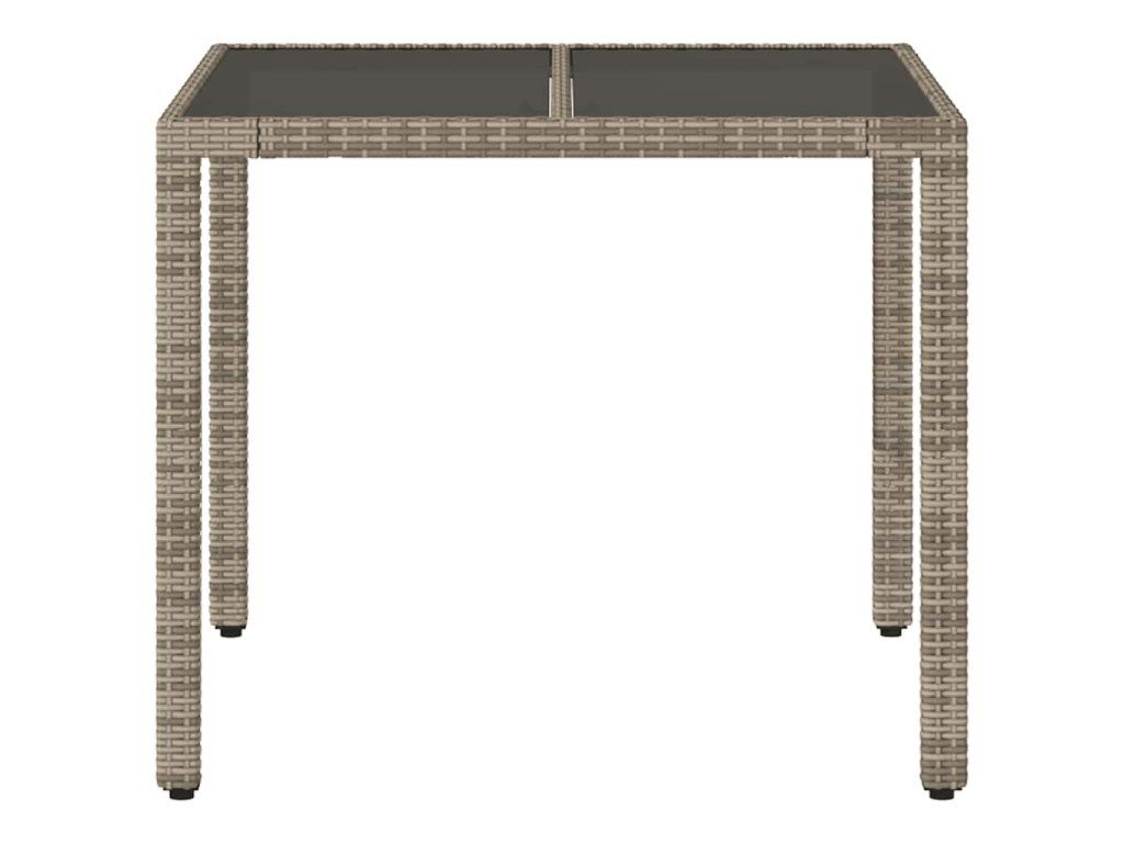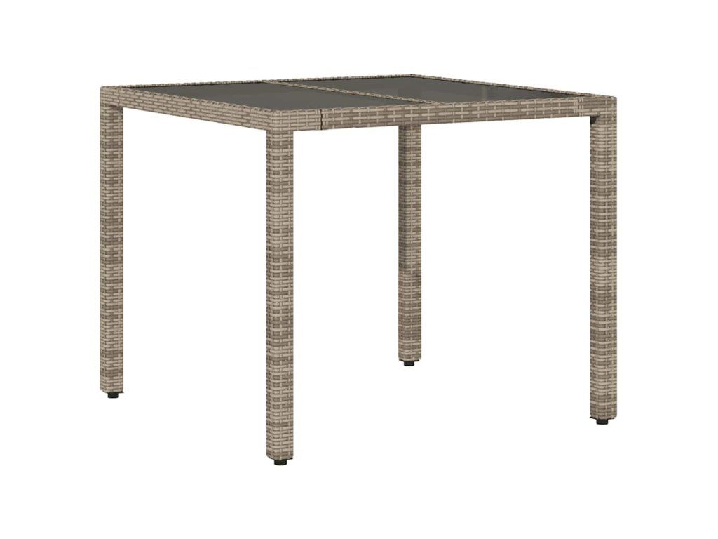 Multidom Záhradný stôl so sklenenou doskou sivý 90x90x75 cm polyratan
