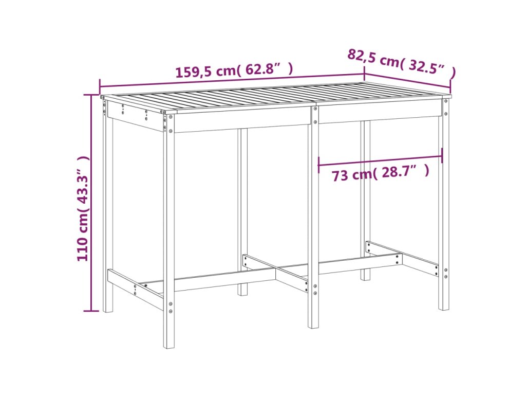 Multidom Záhradný stolík 159,5x82,5x110 cm borovicový masív
