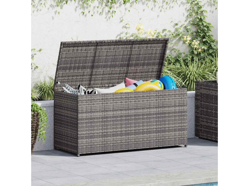 Táto záhradná skladovacia truhlica z PE ratanu je ako stvorená na odkladanie prikrývok, vankúšov, podložiek, hračiek, kníh a ďalších predmetov, ktoré bežne využívate v záhrade či na terase.