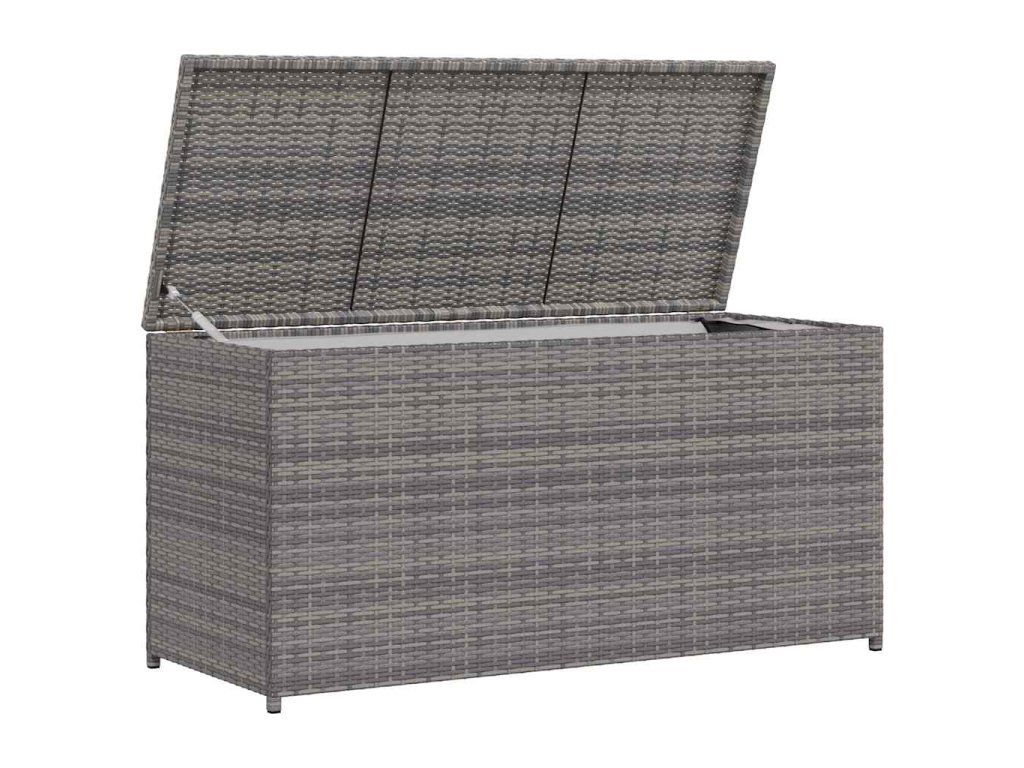 Táto skladovacia truhlica má podšívku, vďaka ktorej je ako stvorená na odkladanie podložiek k záhradnému nábytku a mnohých ďalších predmetov. Skladovacia truhlica je vyrobená z PE ratanu, ktorý je odolný voči poveternostným vplyvom, takže sa ľahko čistí, je naozaj trvácna a vhodná na každodenné používanie v exteriéri.