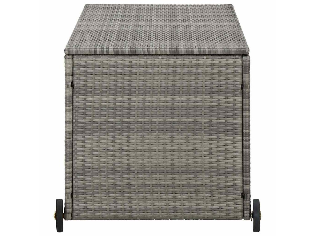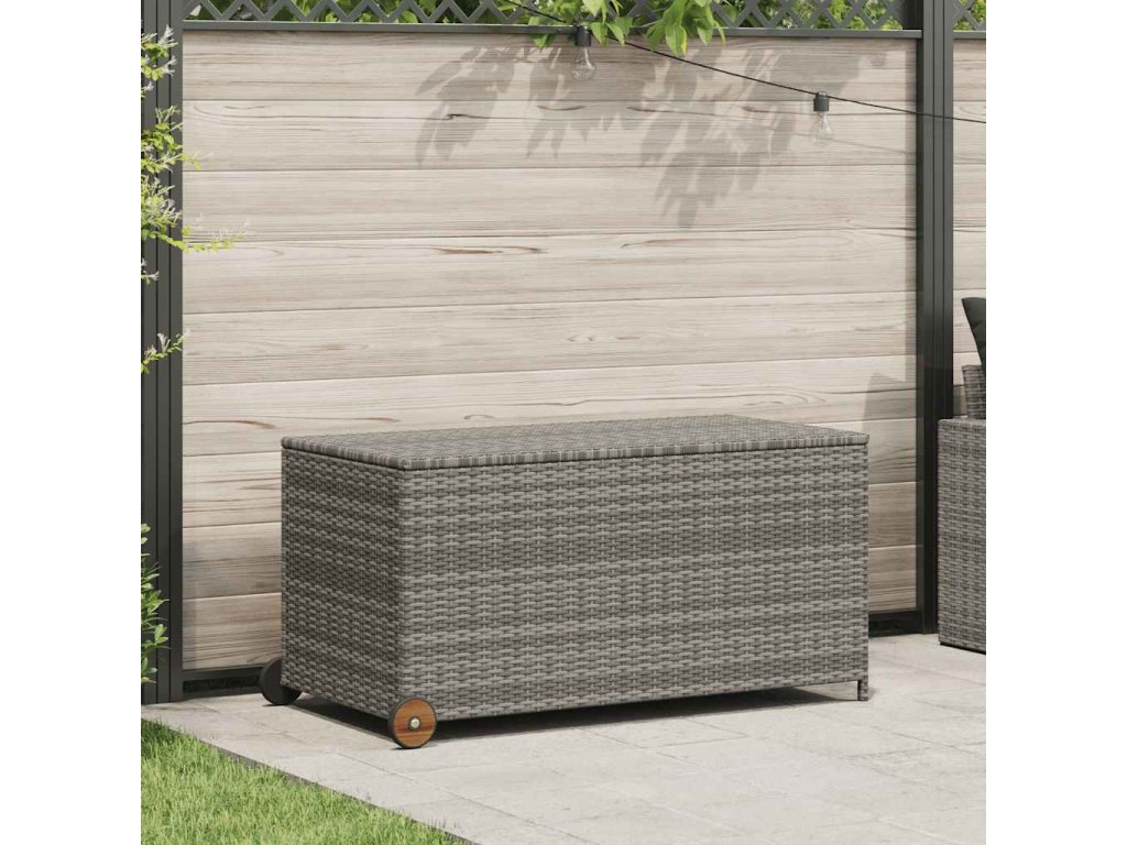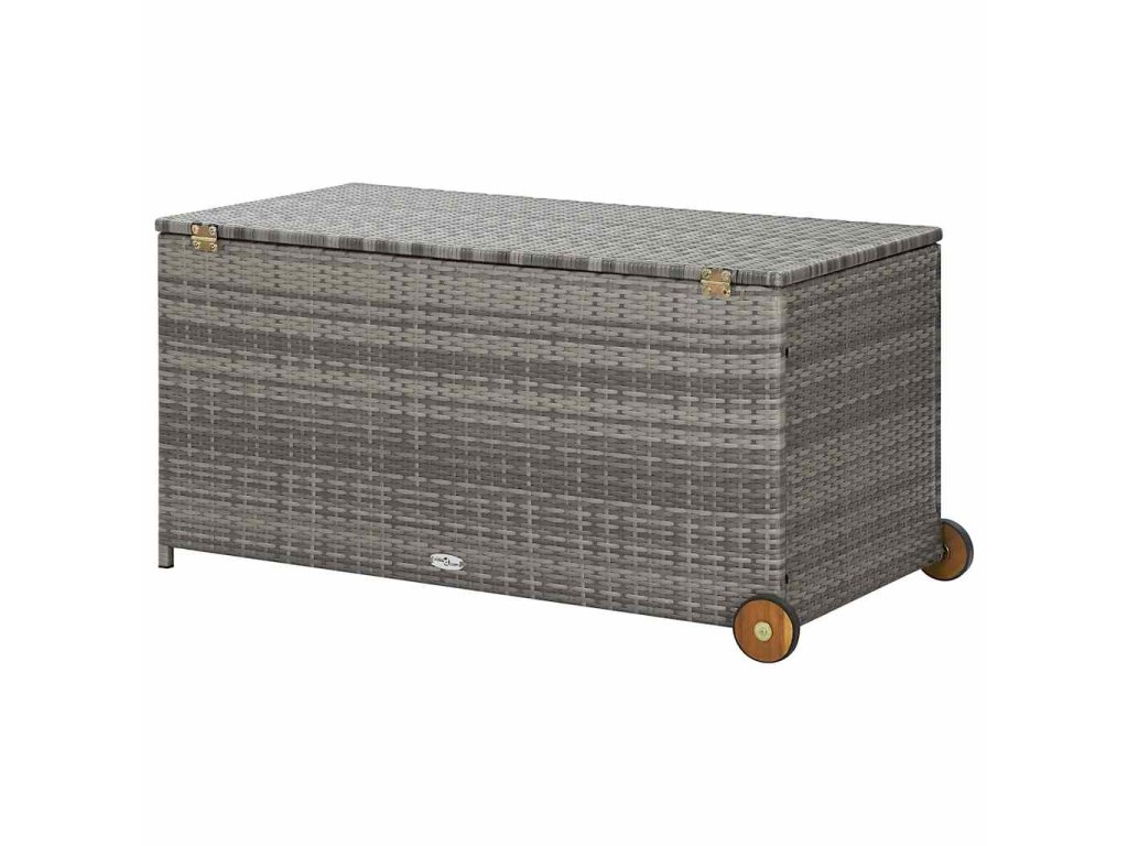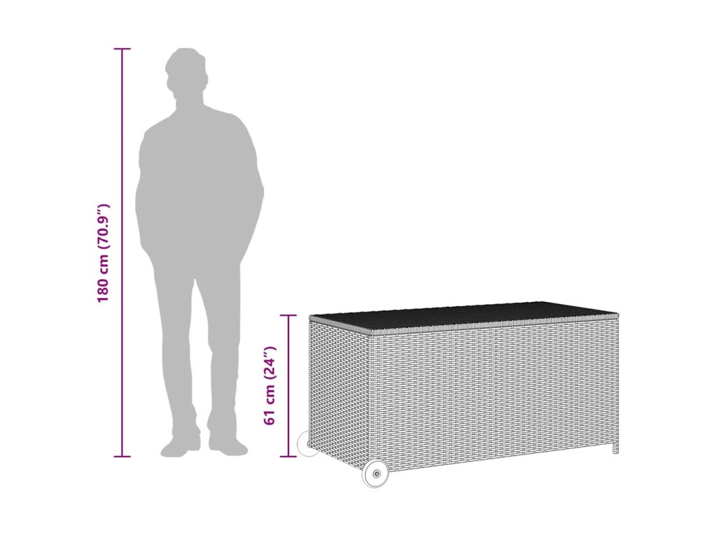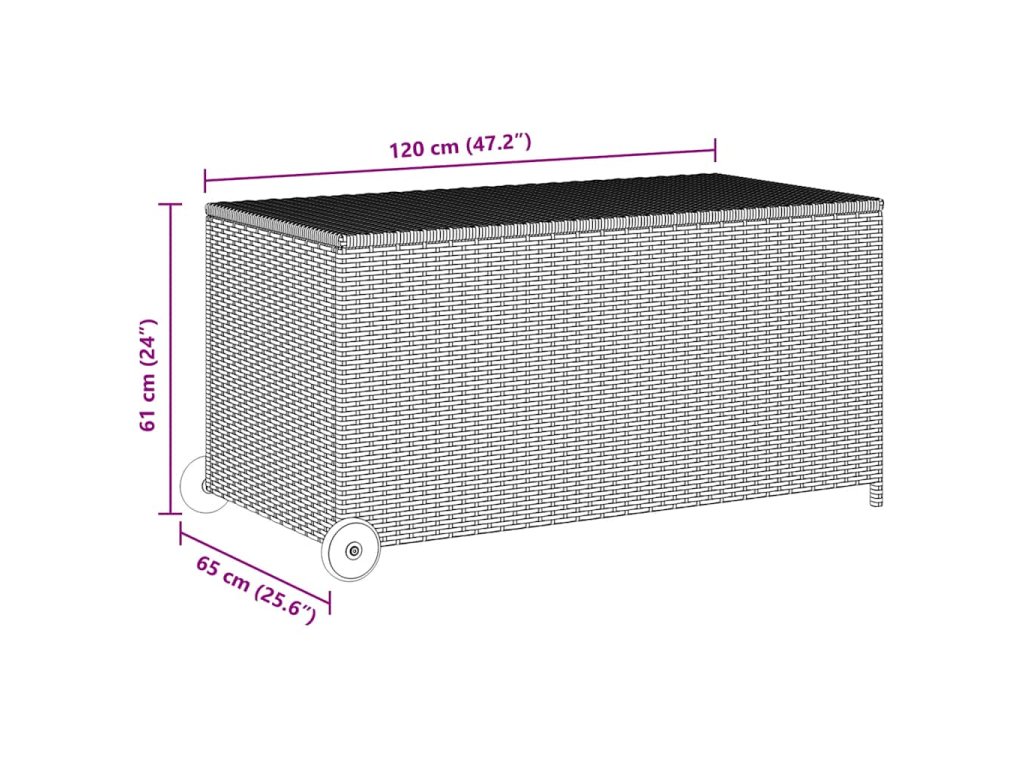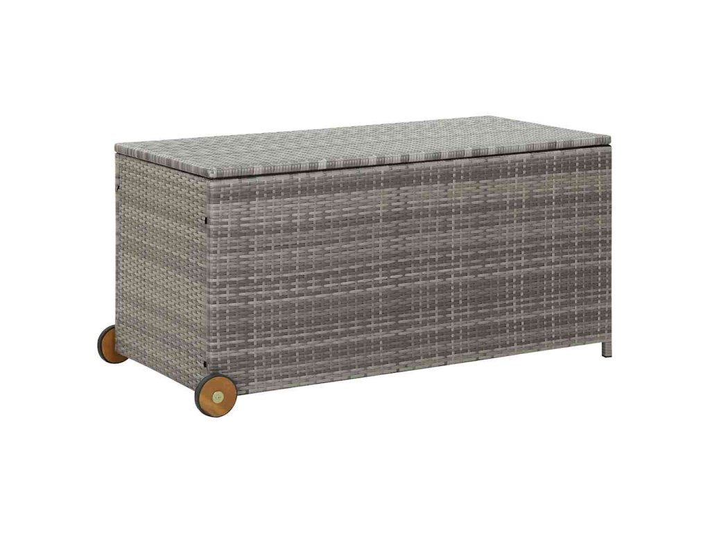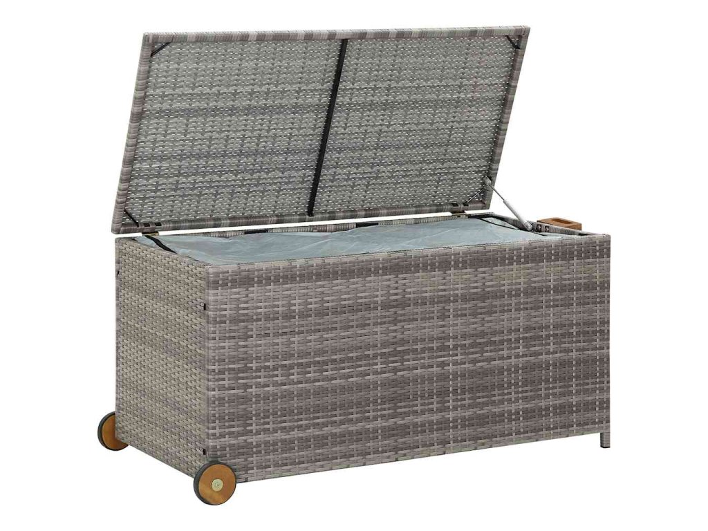 Box je vyrobený z odolného polyratanu odolného voči poveternostným vplyvom a bude ideálny na vnútorné aj vonkajšie použitie. Tento box je vhodný na uloženie vašich vankúšov, podušiek, prikrývok, hračiek a iných vecí. Drevená rukoväť s olejovou úpravou a vnútorné nepremokavé vrecko ochránia vaše veci pred vlhkosťou. Je navrhnutý s 2 kolieskami a rukoväťou na jednej strane pre ľahkú prepravu. Navyše sa ľahko čistí vlhkou handričkou.