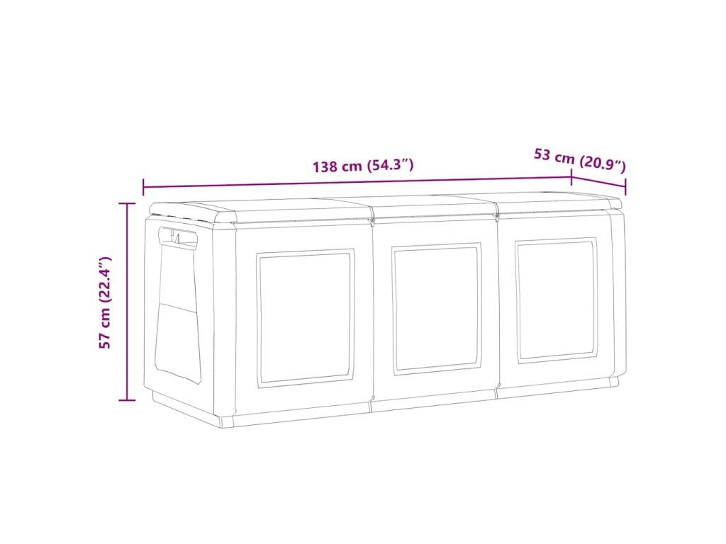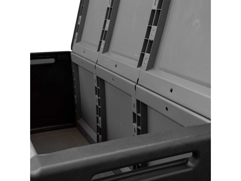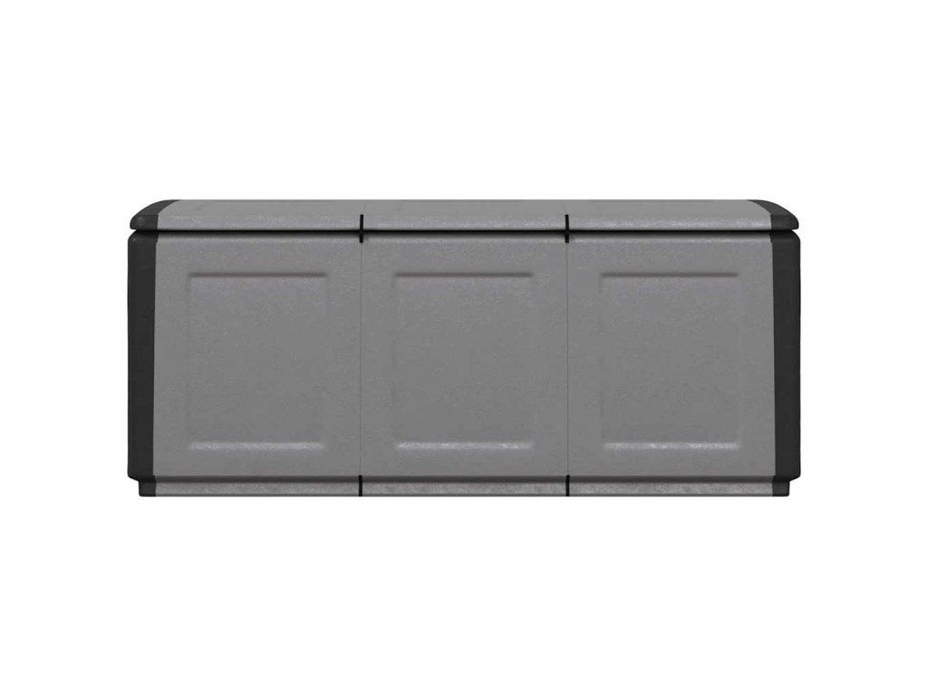 Úložná truhlica je vyrobená zo 100% PP materiálu, vďaka čomu je odolná voči poveternostným vplyvom a UV žiareniu. Záhradný úložný box má nenápadný, ale nadčasový dizajn, a hodí sa do interiéru aj exteriéru. Úložný kufrík navyše ponúka dostatok úložného priestoru na podsedáky, vankúše, s iné domáce či záhradné predmety.
