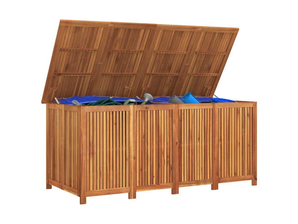 Tento drevený záhradný úložný box poskytuje dostatok úložného priestoru na podložky k záhradnému nábytku, záhradné náradie a všetko ostatné, čo chcete mať vonku po ruke. Môžete ho využívať aj v interiéri.