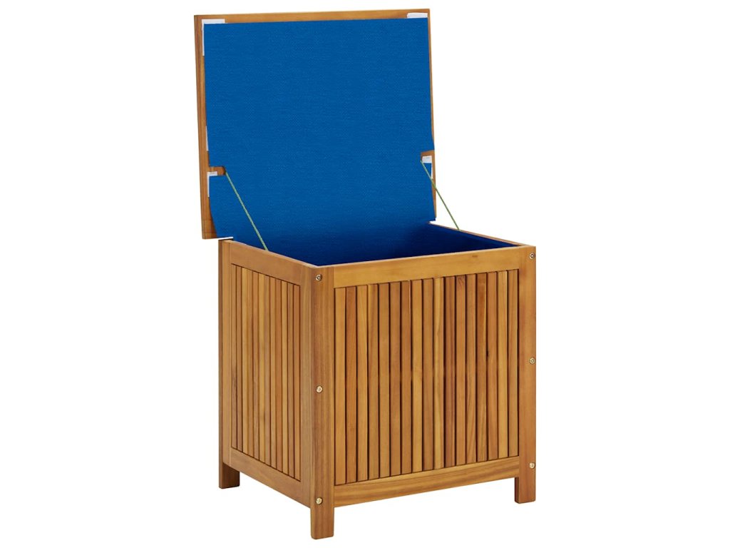 Úložná lavica je vyrobená z akáciového masívu s olejovým náterom, vďaka čomu je odolná, veľmi trvácna a vhodná na používanie v exteriéri. Úložná truhlica poskytuje množstvo priestoru na odkladanie rôznych domácich alebo záhradných predmetov, ktoré potrebujete mať prehľadne uložené a na dosah ruky.