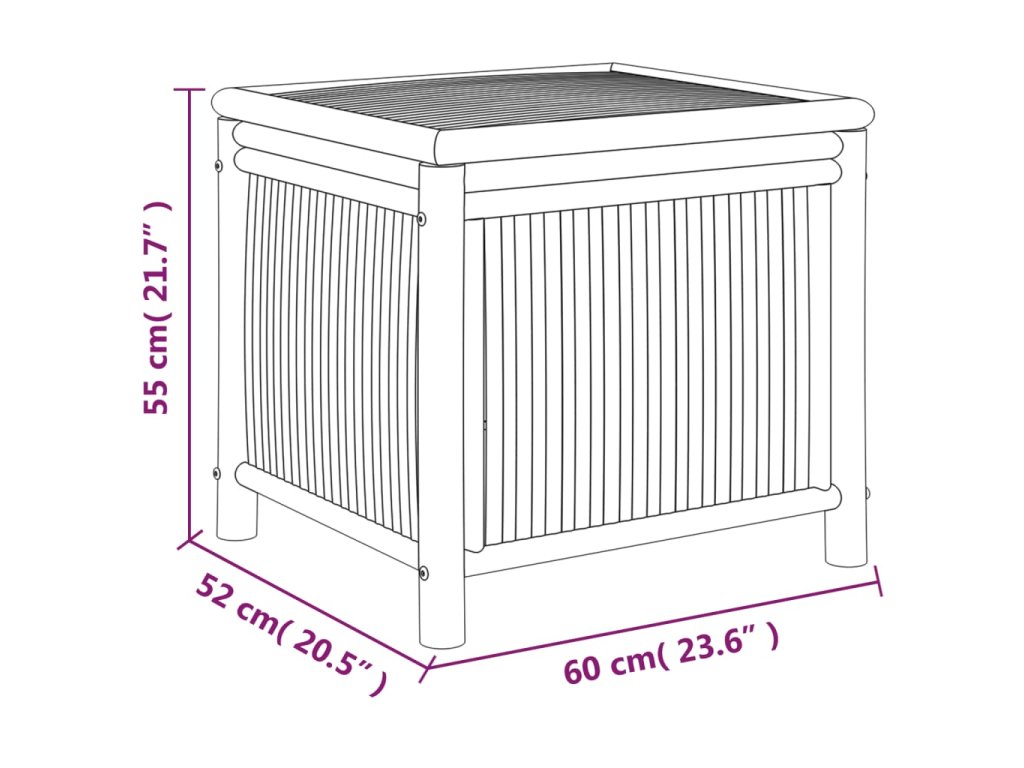Tento bambusový záhradný úložný box poskytuje dostatok úložného priestoru na vankúše záhradného nábytku, hračky, záhradné náradie a všetko ostatné, čo chcete mať vo vonkajšom obytnom priestore na dosah. Môže sa používať aj v interiéri.