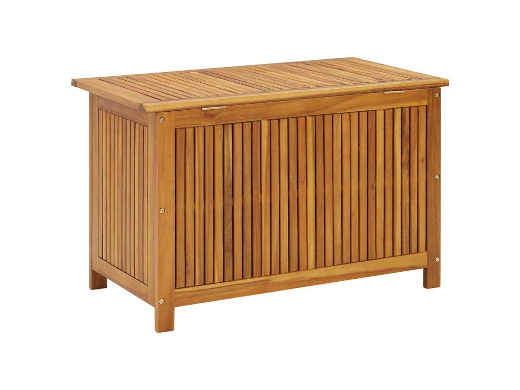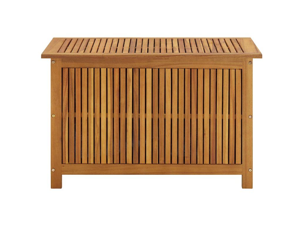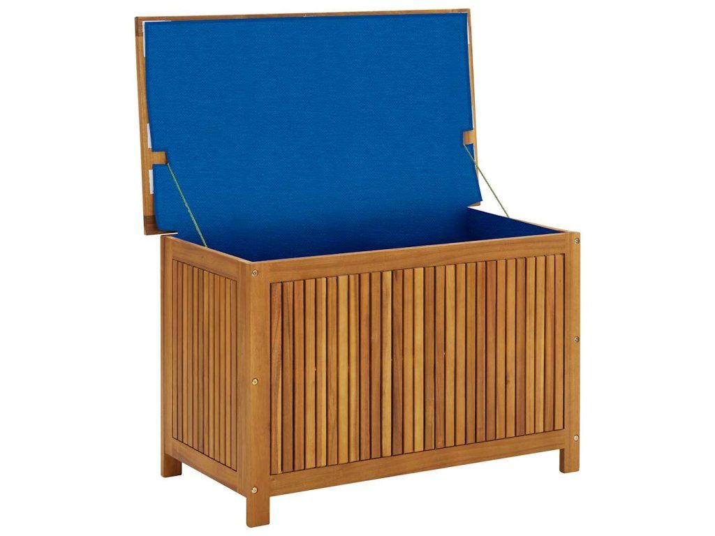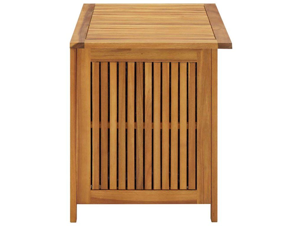Úložná lavica je vyrobená z akáciového masívu s olejovým náterom, vďaka čomu je odolná, veľmi trvácna a vhodná na používanie v exteriéri. Úložná truhlica poskytuje množstvo priestoru na odkladanie rôznych domácich alebo záhradných predmetov, ktoré potrebujete mať prehľadne uložené a na dosah ruky.