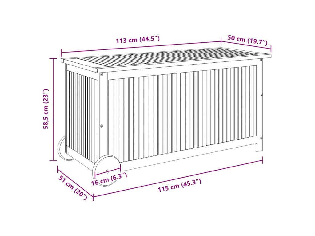 Multidom Záhradný úložný box s kolieskami 113x50x58 cm masívna akácia