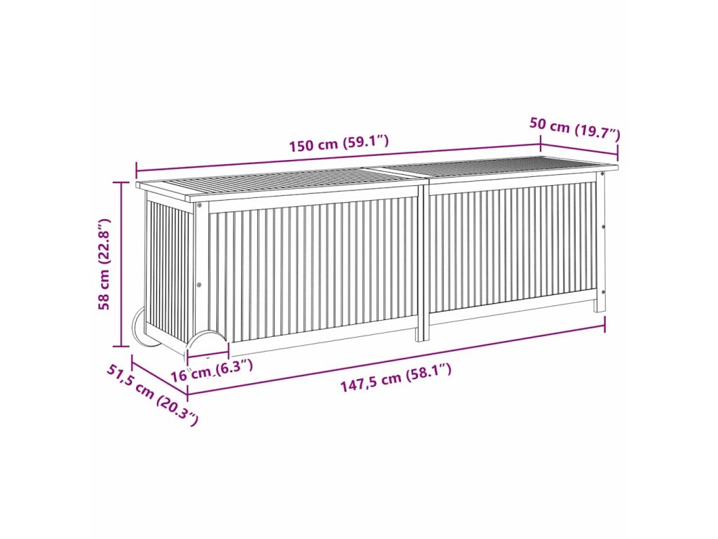 Multidom Záhradný úložný box s kolieskami 150x50x58 cm masívna akácia