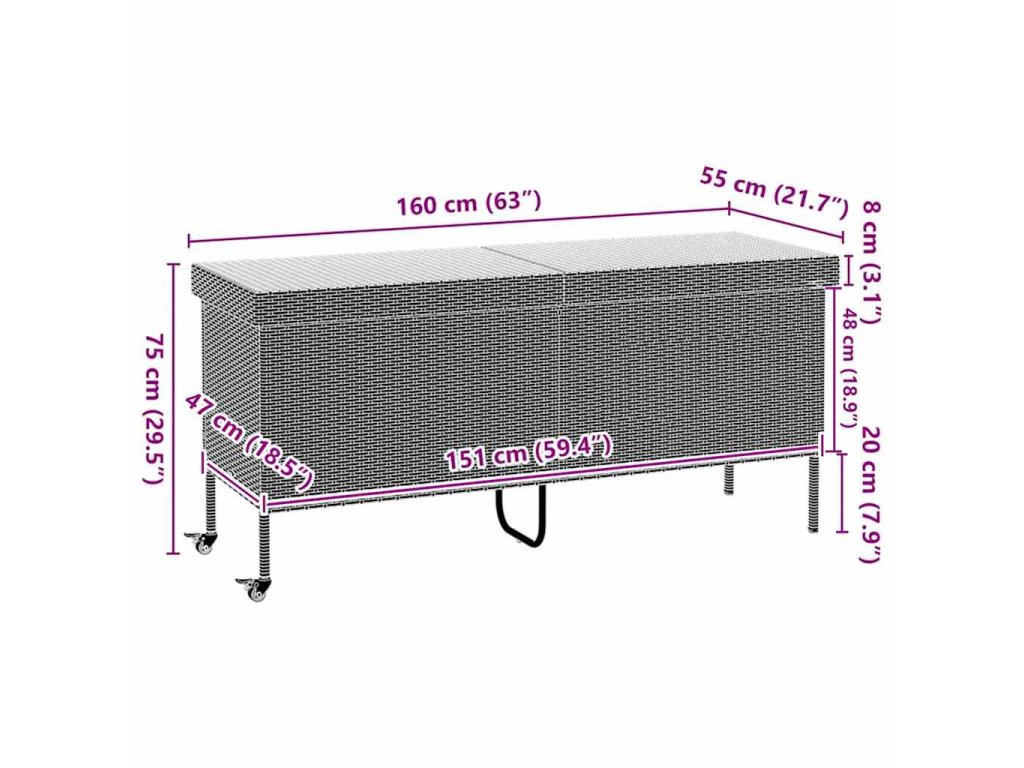 Multidom Záhradný úložný box s kolieskami čierny 160x55x75 cm polyratan