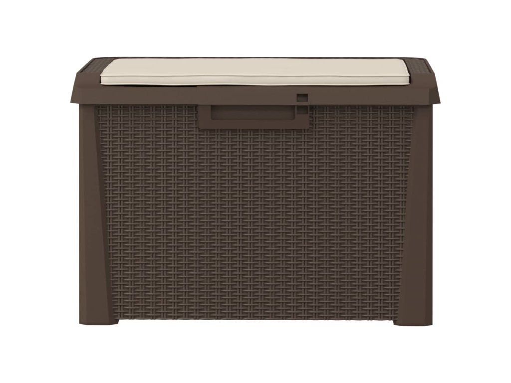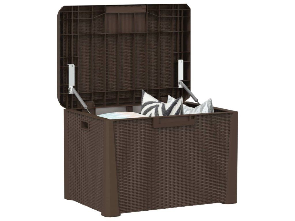 Tento záhradný úložný box s ratanovým vzhľadom je ideálny na uskladnenie vankúšov, podušiek, prikrývok, hračiek a ďalších predmetov na záhrade alebo na terase.