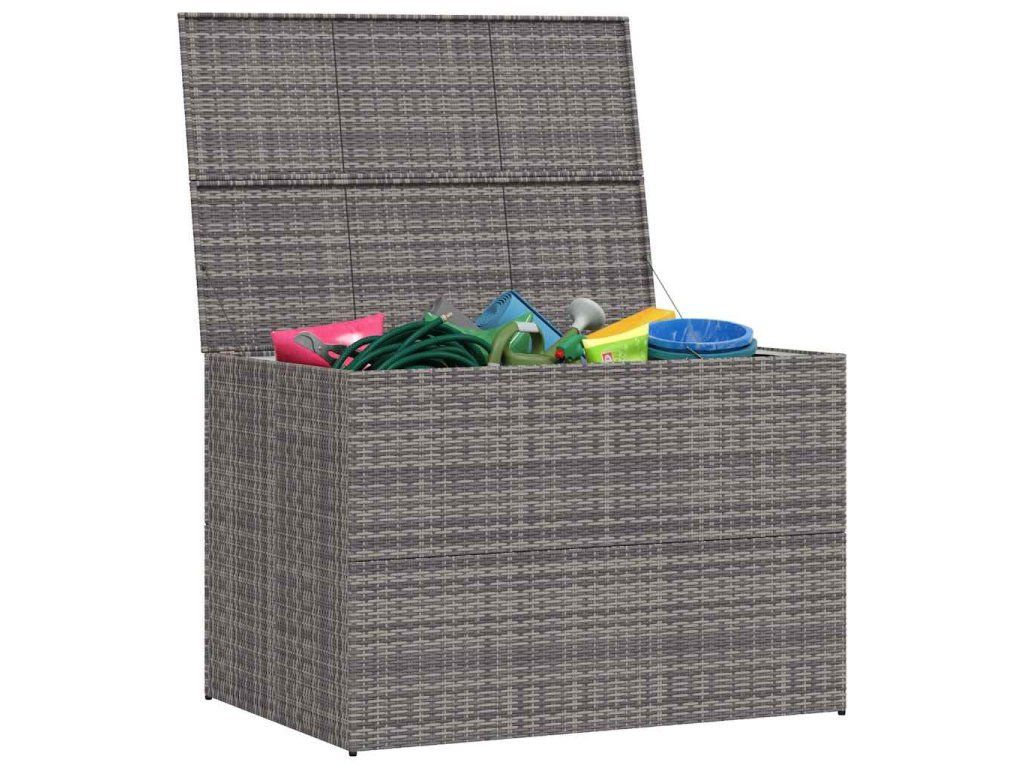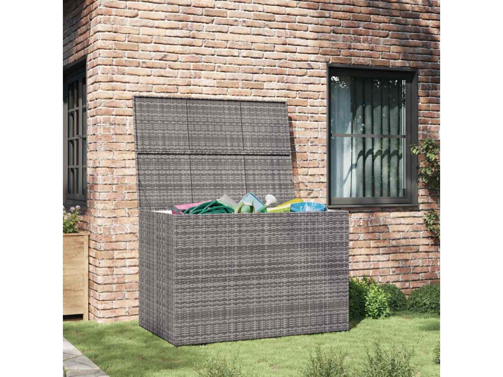 Náš polyratanový vonkajší úložný box je ako stvorený na odkladanie podložiek na záhradný nábytok, vankúšov, prikrývok či uterákov a rôznych drobností.