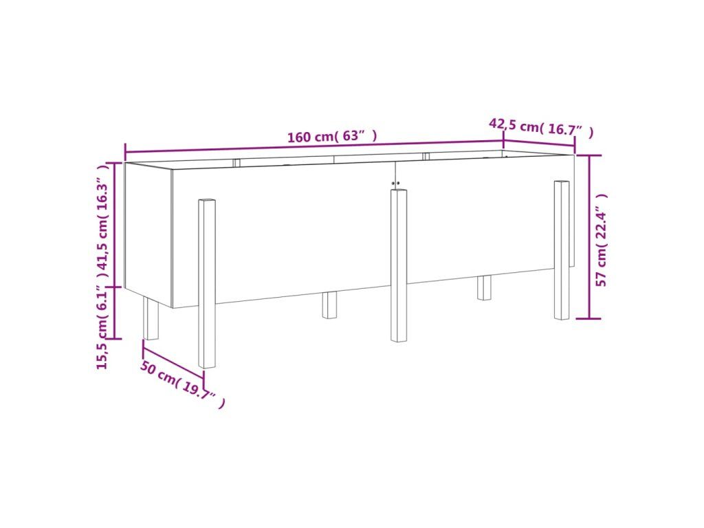 - Rozmery: 160x50x57 cm (Š x H x V)