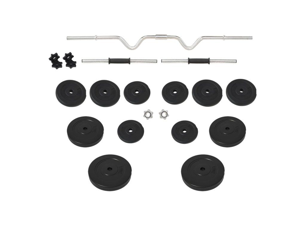 - Hmotnosť závaží: 2 x 10 kg + 4 x 5 kg + 4 x 2 kg + 4 x 1,25 kg