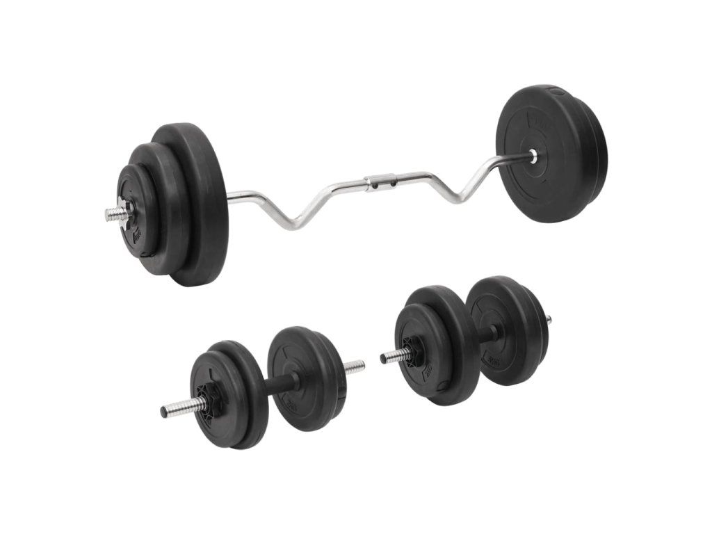 - Multifunkčná činka: Sada multifunkčných činiek je vhodná na precvičenie hrudníka, bicepsov, tricepsov a chrbtových svalov.