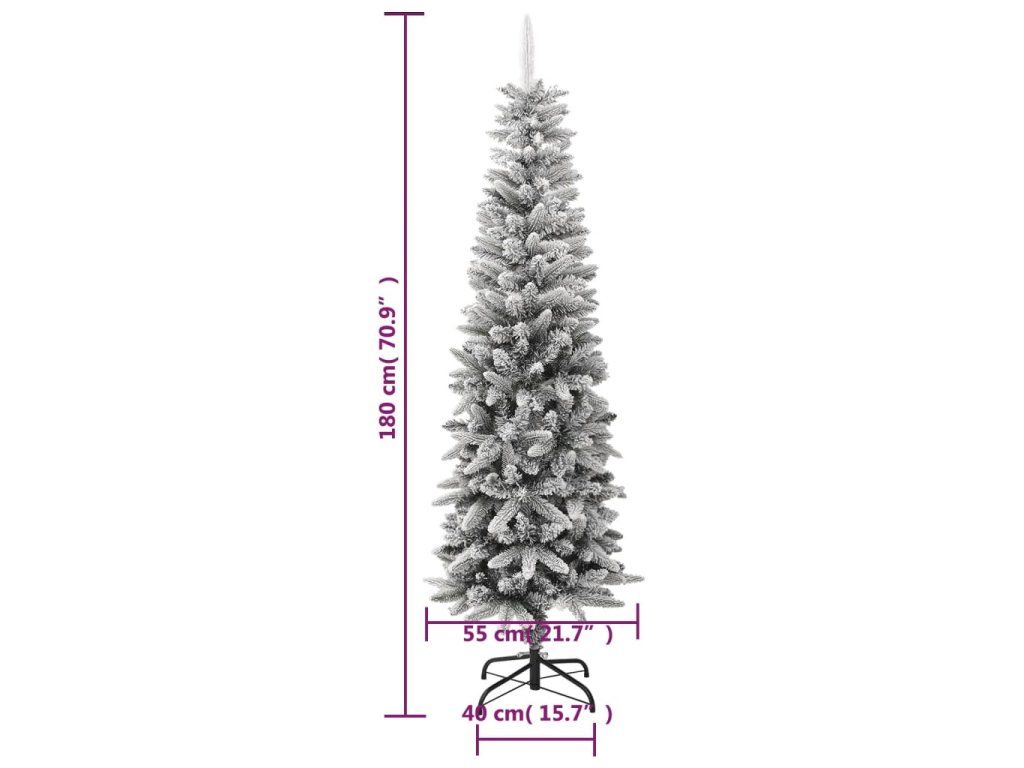 Multidom Zasnežený umelý úzky vianočný stromček 180 cm PVC a PE