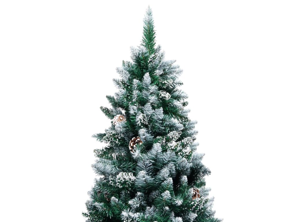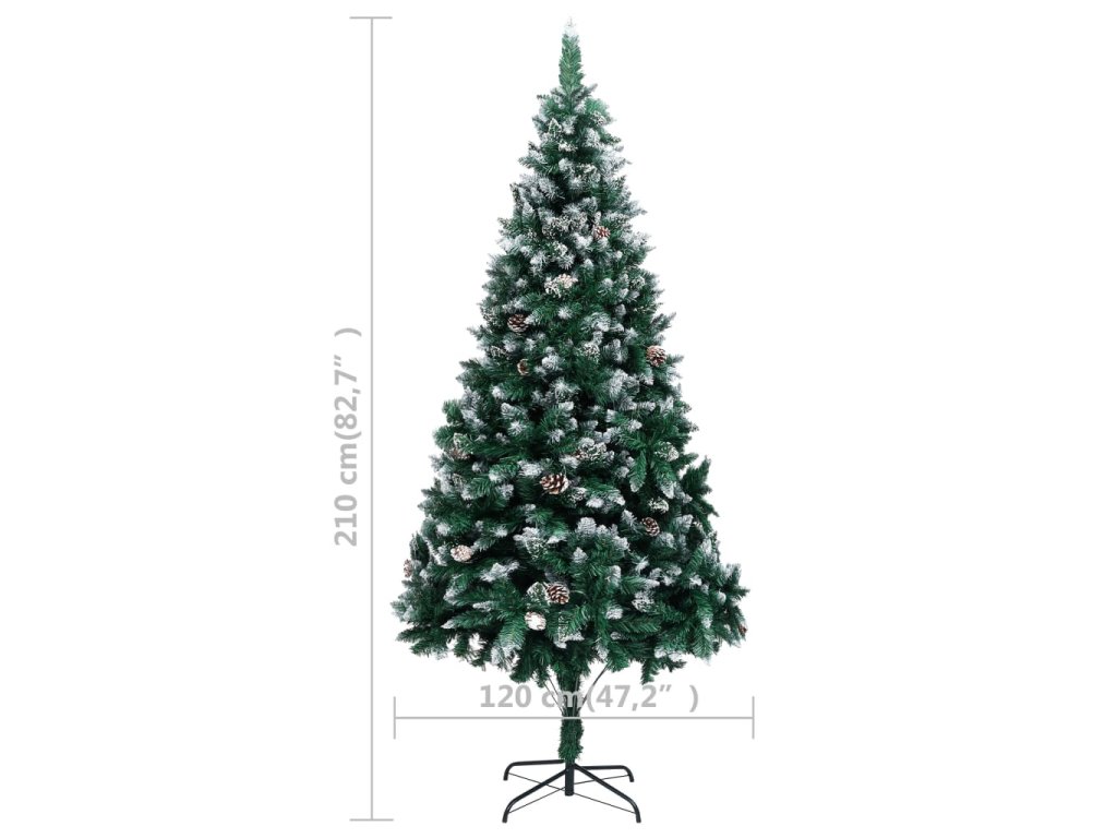 Tento vianočný stromček má mimoriadne husté špicaté ihličie s bielymi trblietkami na špičkách. Vetvičky s ihličím a borovicové šišky sa dajú upravovať do akéhokoľvek tvaru. Tento vianočný stromček môžete na rozdiel od živého používať opakovane každý rok, takže predstavuje výbornú alternatívu pre všetkých, ktorí chcú počas vianočných sviatkov ušetriť. Súčasťou je aj železný podstavec, ktorý dodáva stromčeku stabilitu.