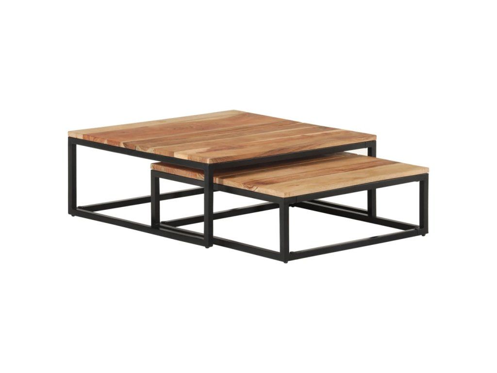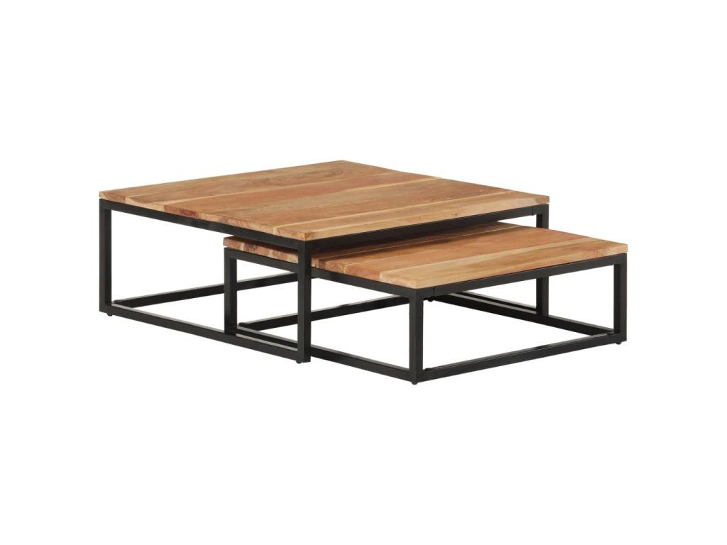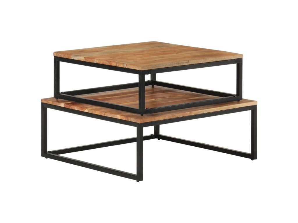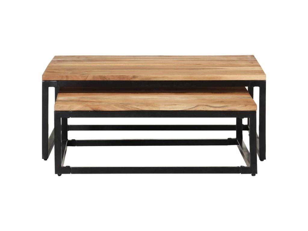 Konferenčný stolík je vyrobený z masívneho akáciového dreva, čo je tvrdé drevo s bohatou štruktúrou. Tento krásne navrhnutý stolík je stabilný, odolný a pútavý. Vďaka remeselnému spracovaniu a krásnej textúre dreva je každý kus nábytku jedinečný a trochu odlišný od ostatných kusov. Čierny železný podstavec s práškovaným povrchom dodáva stolíkom dodatočnú stabilitu a odolnosť. Malý stolík môžete zasunúť pod väčší, aby ste ušetrili miesto.