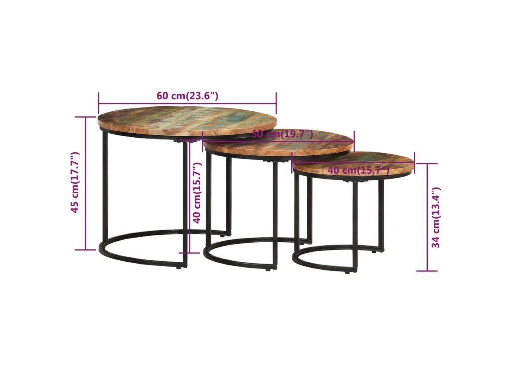 Multidom Zasúvacie stolíky 3 ks recyklované masívne drevo